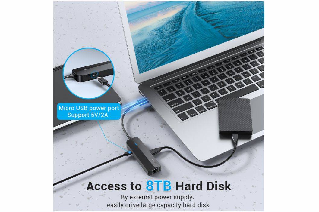 ⭐️ Vention Hub USB A 3.0 3 PORT Lan Ethernet Adaptor w/ Power ⭐️