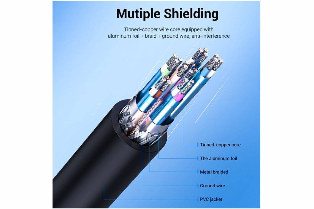 💎 Shielding : Aluminium Foil + Ground Wire + Braid