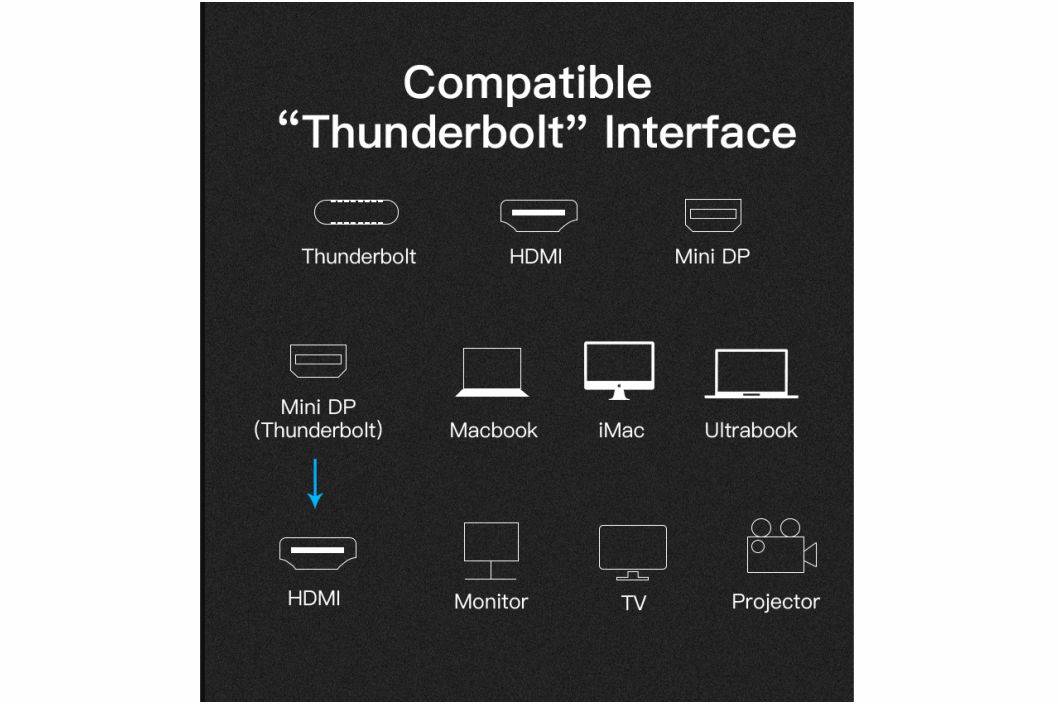 Specifications: 🔹 Lenght : 1.5 / 2 / 3 Meter🔹 Connector Type : Mini DisplayPort Male to HDMI Male🔹 Chipset : Parade PS8121E🔹 Connector : Gold Plated🔹 Conductor : 30AWG, 99.99% Oxygen-Free Copper🔹 Shielding : Aluminum Foil + Anti-Jamming Materials🔹 Jacket shell : PVC Environmental Material