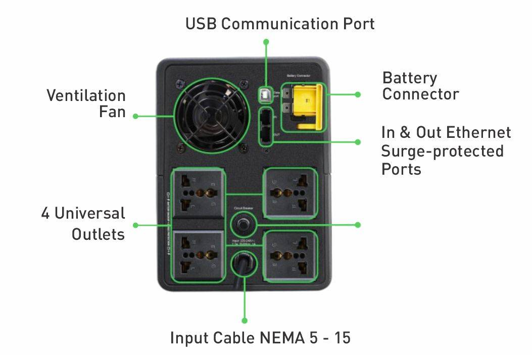 - Audible Alarm : Alarm when on battery : distinctive low battery alarm