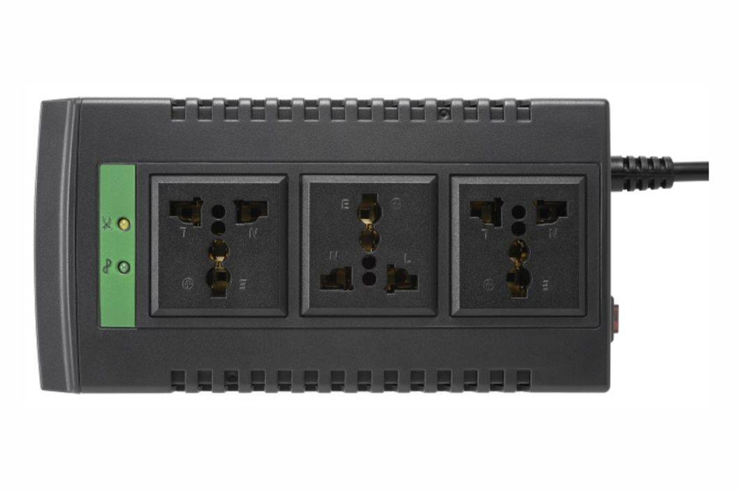 TECHNICAL SPECIFICATIONS: - Output Power Capacity : 2000VA/1000 W - Nominal Output Voltage : 230V - Nominal Input Current : 6.25A - Acceptable Voltage Range Tolerance : 160-284 VAC - Voltage Regulation : ± 10% @ input range - Nominal Frequency : 50Hz - Response Time : 6 ms - Efficiency : >95% - Number of Outlets : 3 - Plug Type : Schuko - Cord Length : 1 meter - AVR & Surge Protection : All outlets - Joule Rating : 148 Joules - Dimensions (WxHxD) : 210 x 110 x 132 mm - Net Weight : 3.72 kg - Audible noise at 1 meter from surface of unit : < 40 dB - Operating Temperature : 32°F to 104°F / 0°C to 40°C - Humidity : 0-90% relative humidity (non-condensing) - Certification : CE