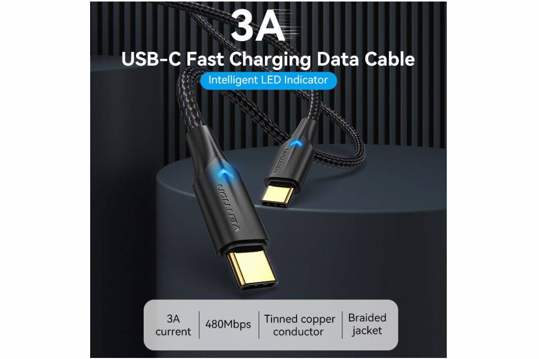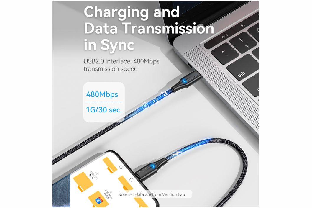 Vention Kabel Charger V-LIGHT USB Type C Fast Charging LED Android TAU