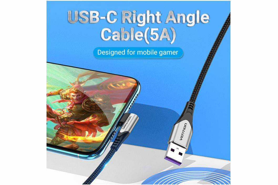 Vention Kabel Data USB Type C 90 Degree Angle Fast Charger Braided COG
