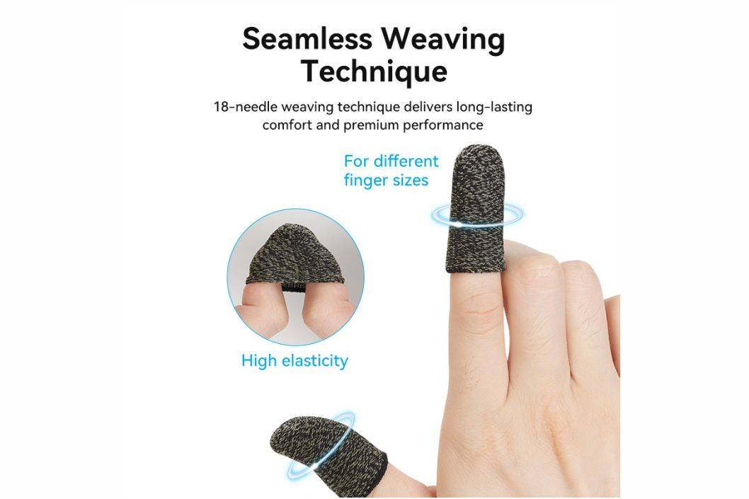 🔹Name : Game Finger Sleeve Color : Black 🔹Varian Model : KQAB0 : Nylon+Copper Fiber 🔹Techniques : 18-needle machine Seamless Weave 🔹Thickness : 0.3mm 🔹Isi : 2 pcs