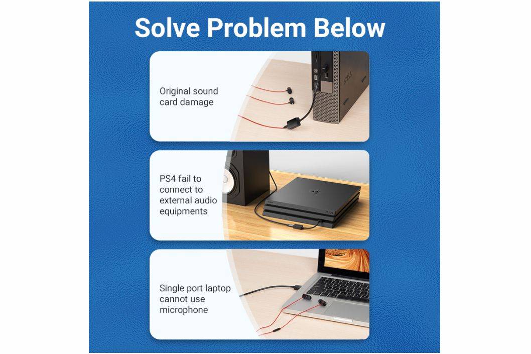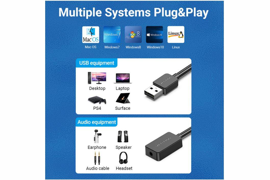 Spec : 🔹 Interface Type : - CDZ : USB Type A Male ; 3.5mm Female TRRS 🔹 Sampling Rate : 44.1/48K@16bit 🔹 Transminssion Direction : USB to Headphone+Headset / USB to Headphones(OMTP/CTIA) 🔹 Shell : ABS 🔹 Conductor Material : Tinned Cooper 🔹 Wire Gauge : 28 AWG 🔹 Wire Body Shileding : Aluminum foil 🔹 Jacket Material : PVC 🔹 Wire Body Outer Diameter : 4.0mm 🔹 Body Length : 0.15m