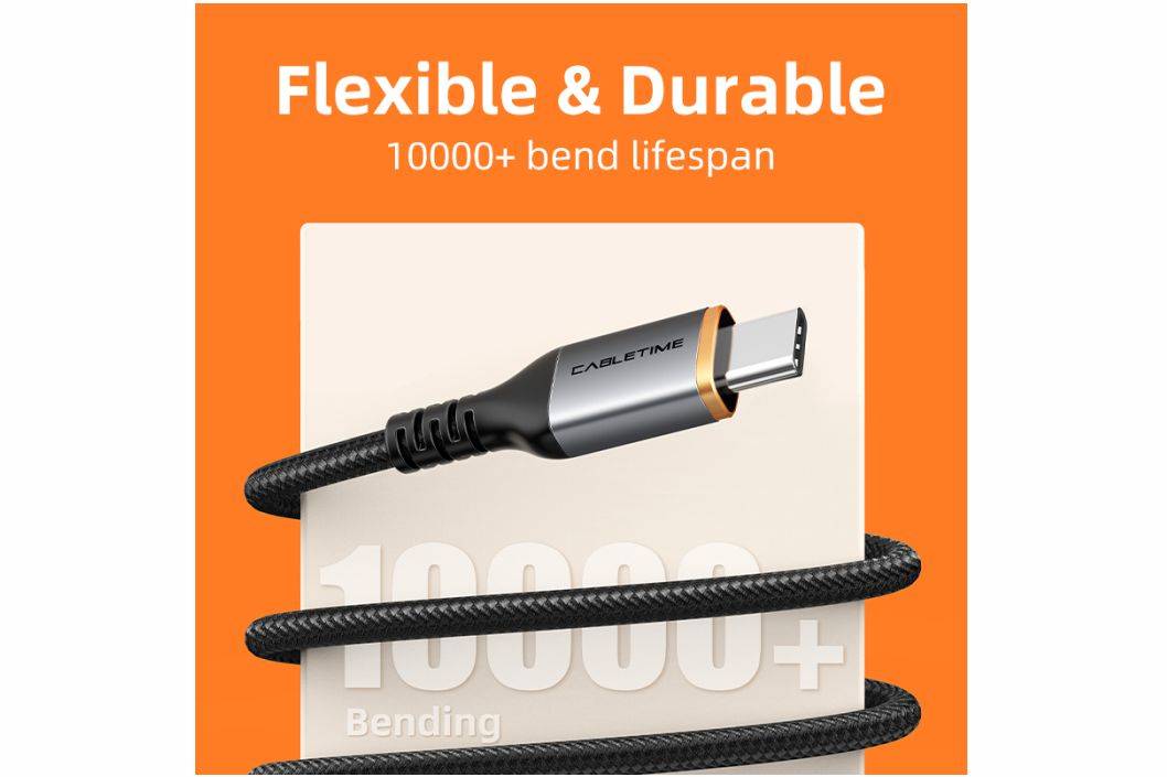 Memiliki desain braided untuk fleksibilitas dan tahan terhadap kerusakan, sehingga membuatnya lebih kuat dan tahan lama bahkan setelah penggunaan berulang kali