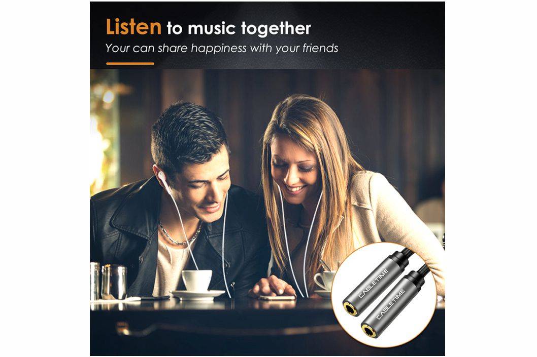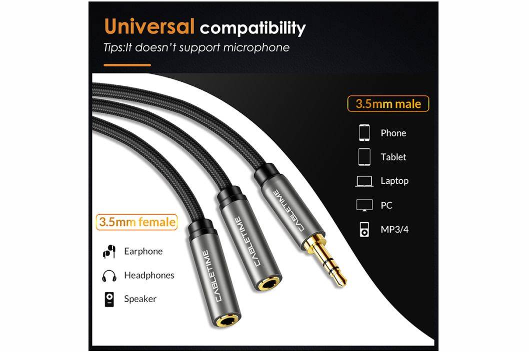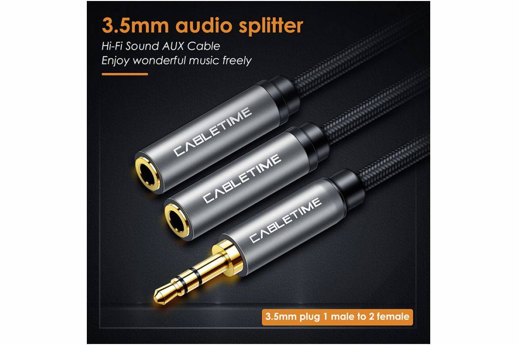 1 pcs Cabletime Aux 3.5mm Male to 2 Aux 3.5mm Female