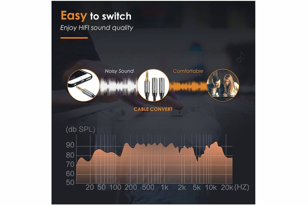 CABLETIME Kabel Splitter Audio Aux 3.5mm to two 3.5mm Aux Female Braided Hi-Fi Clear Sound Braided CF13B