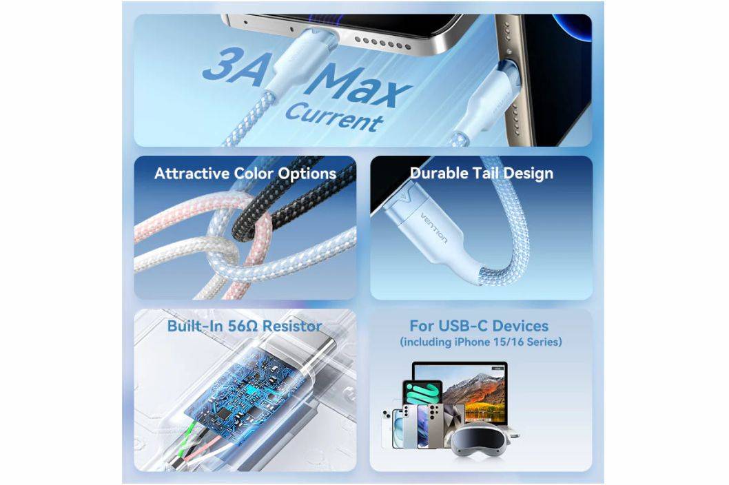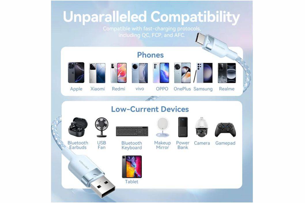 Vention Kabel Data Charger USB A 2.0 to Type C Type-C 3A Fast Charging CTN