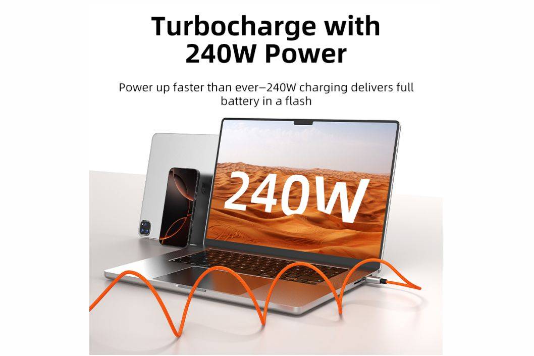 🔸Product Features : PD 240W (48V/5A) Ultra-Fast Charging PD 3.1 Fast Charging Technology Data Transmission 480Mbps E-Marker Chip Safe and Efficient Charging