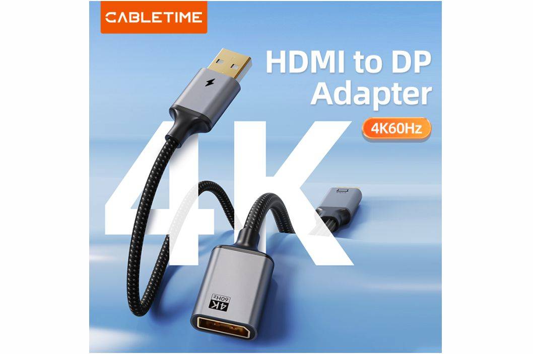 CABLETIME Converter HDMI Male to Displayport Female 4K60Hz with USB Power Portī¸