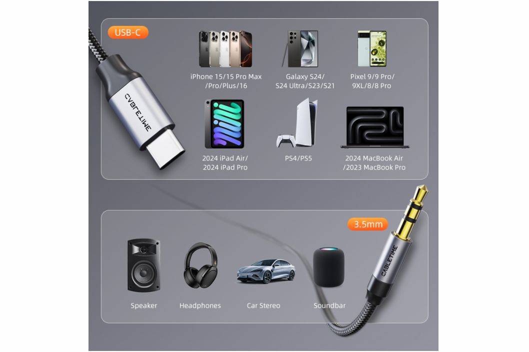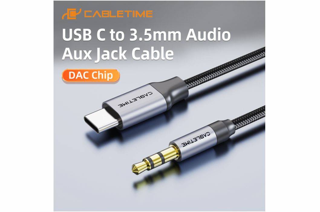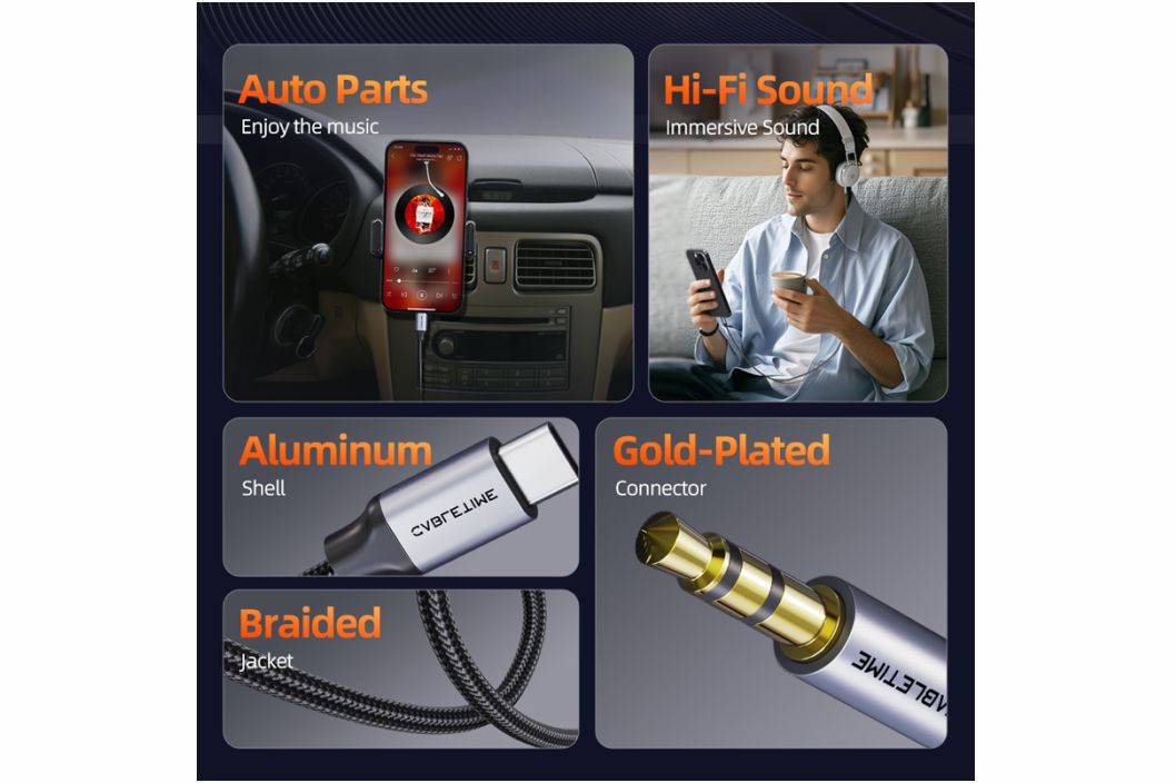 CABLETIME Kabel USB Type C to Aux 3.5mm Male Audio Adapter Braided