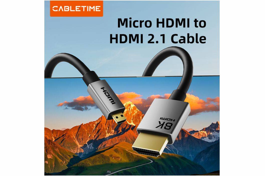 CABLETIME Kabel Micro HDMI to HDMI Male 8K 4K HDR 60Hz for Camera
