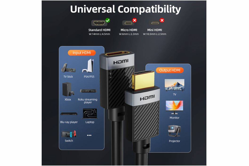 Spesifikasi : Length :0.5M/1M/1.5M/2M/3M/5M Input & Output : HDMI Male to Female v2.0 Connector : Anti-corrosion 24k Gold-Plated Material : Aluminum + PVC Jacket : PVC AWG : 7.3mm ---------