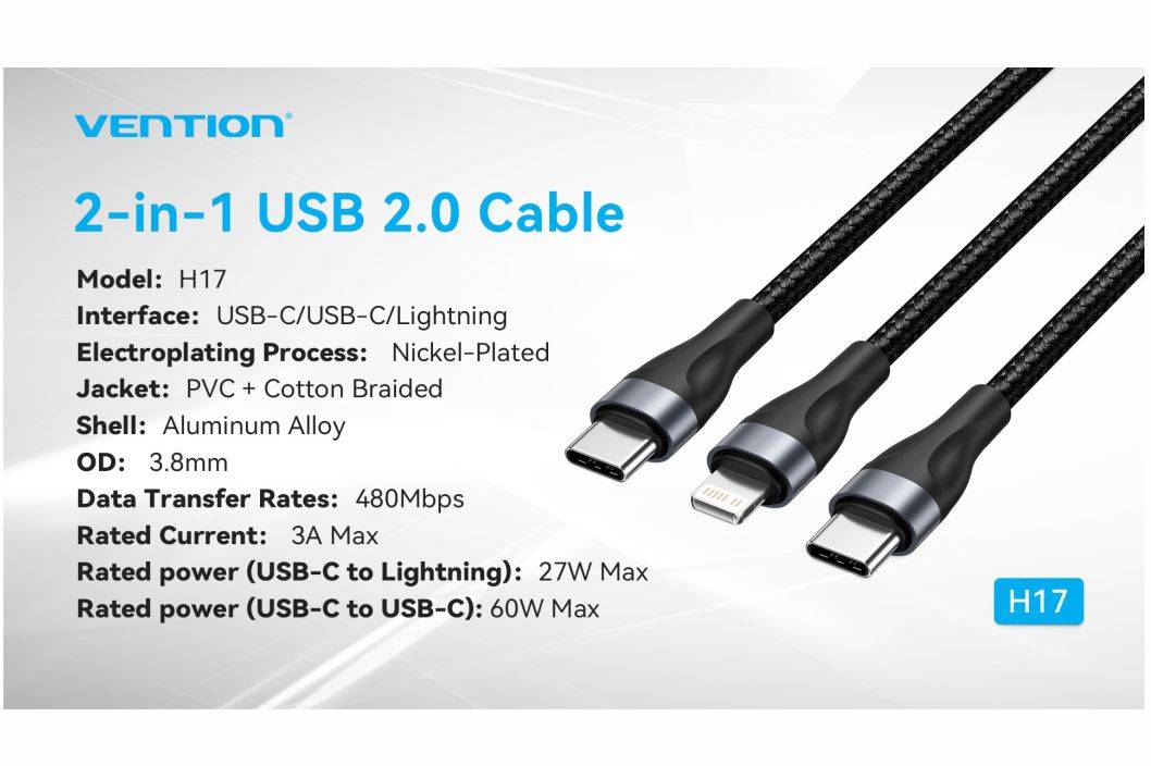Vention 2in1 Type C to Type C & Lightning 3A for Android iPhone