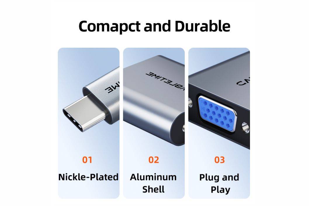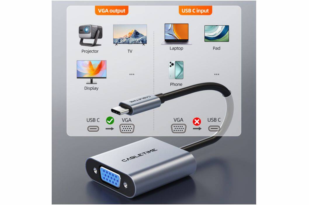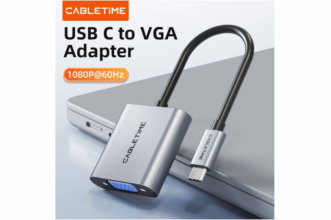CABLETIME USB Type C To VGA Display Adapter Converter FHD 1080p CP17